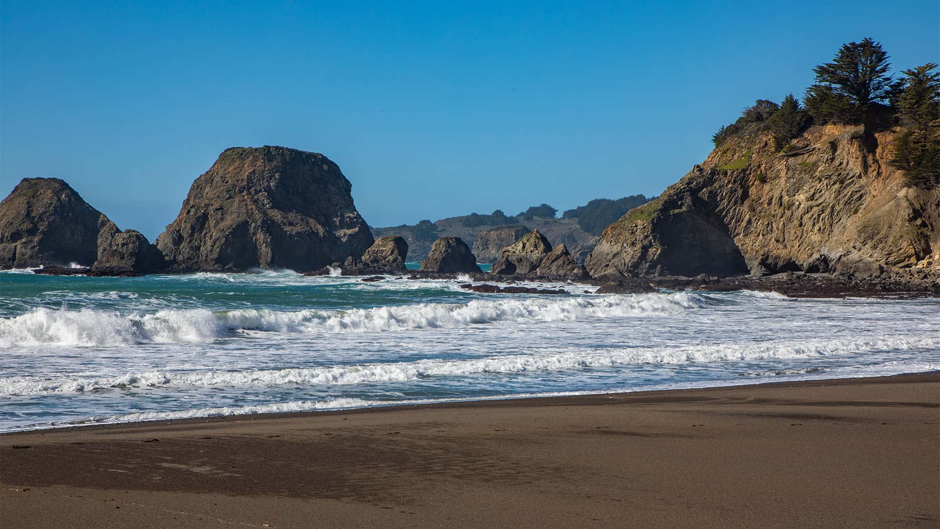 To access Greenwood State Beach, walk carefully southbound along the shoulder of Highway 1 (on the right hand side). You should come to a parking lot area directly across from The Elk Store that is the entrance to the beach. Walk down the pathway to the bottom of the trail where you will find the stunning beach. The park is open daily from 6:00am until one hour after sunset and dogs are permitted.