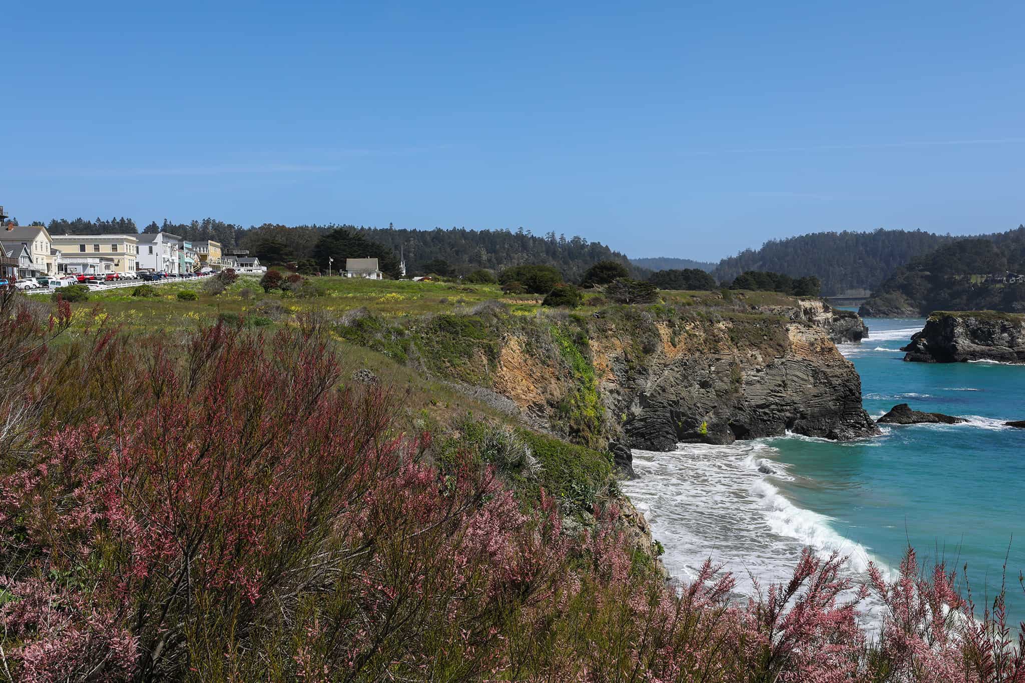 The Village of Mendocino is located on a breathtaking little peninsula that extends out into the Pacific Ocean. The Village is a unique combination of galleries, restaurants, stores, and homes. There simply are not adjectives to describe how all the pieces fit together, but they do and the village has been a recognized landmark since the 1850’s. From Sacred Rock Inn the drive up to the village is only 16 miles, and is one of the most stunningly beautiful drives in the world.